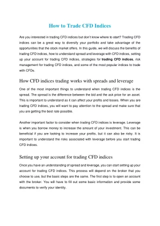 Indices Cfd Broker Line-Up