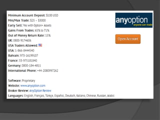 The internet is the cheapest avenue available, and scammers, unfortunately, can operate almost undetected.Some believe that the term binary options gives the wrong impression of how the trading is done. common options strategies